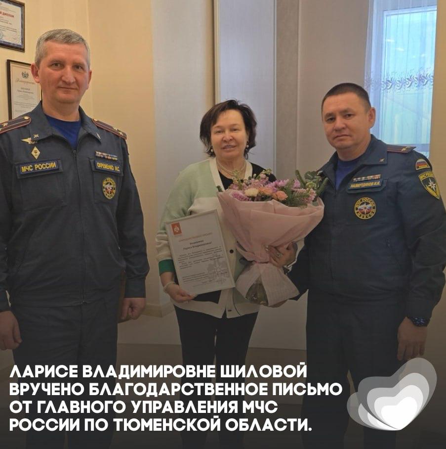 В рамках совещания Ларисе Владимировне Шиловой была вручена благодарность за значительный вклад в формирование культуры безопасности жизнедеятельности населения Тюменской области и развитие долгосрочного сотрудничества.
